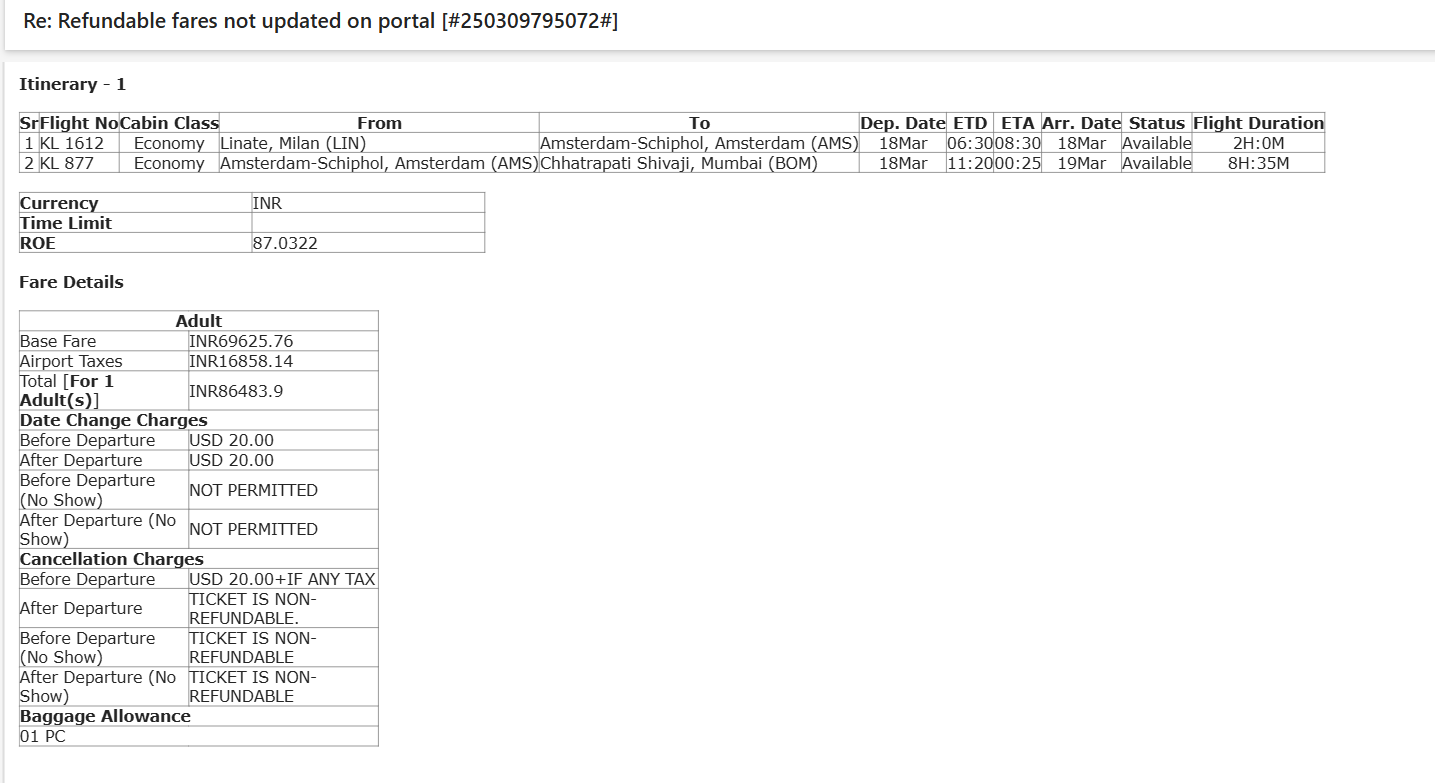 openRefundable fares not updated on portal | Quest2Travel - 17141