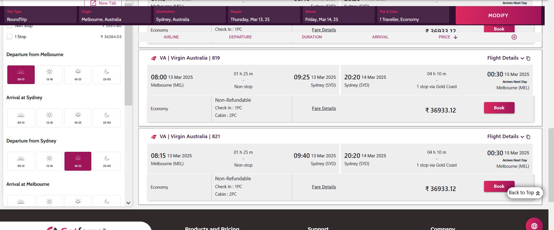 Client is looking for a specific flight, on GFS the combination is not reflecting.
