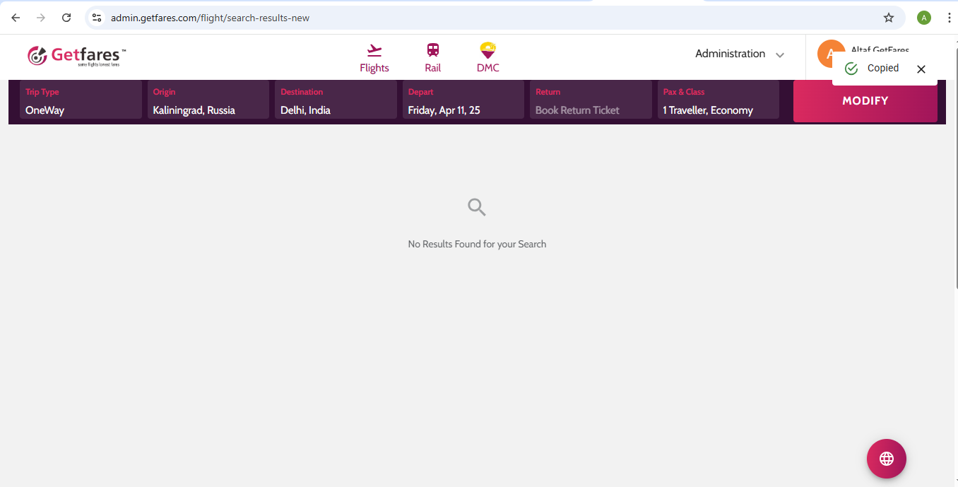 request itinerary is not available under the mapped search category