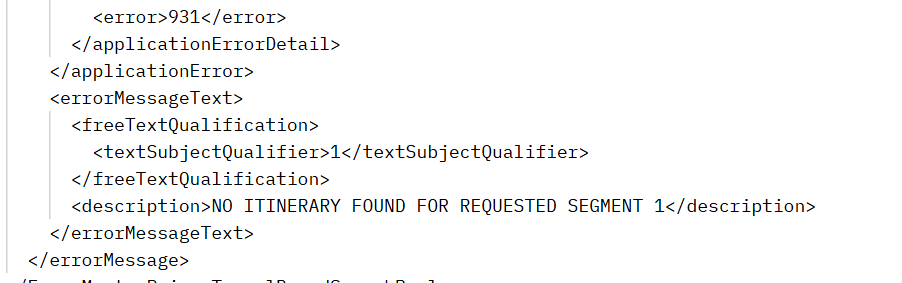 NO ITINERARY FOUND FOR REQUESTED SEGMENT 1