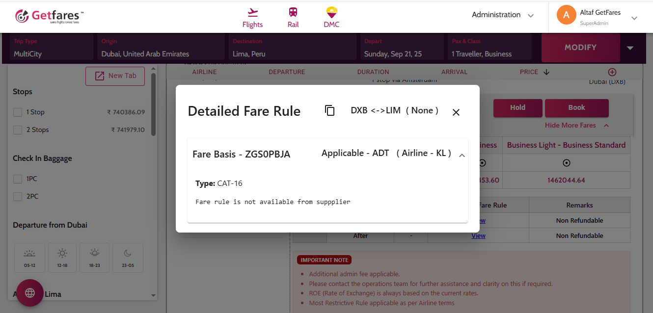 da546da1-9c92-4178-aaed-7993069367a1 - Fare rules not available