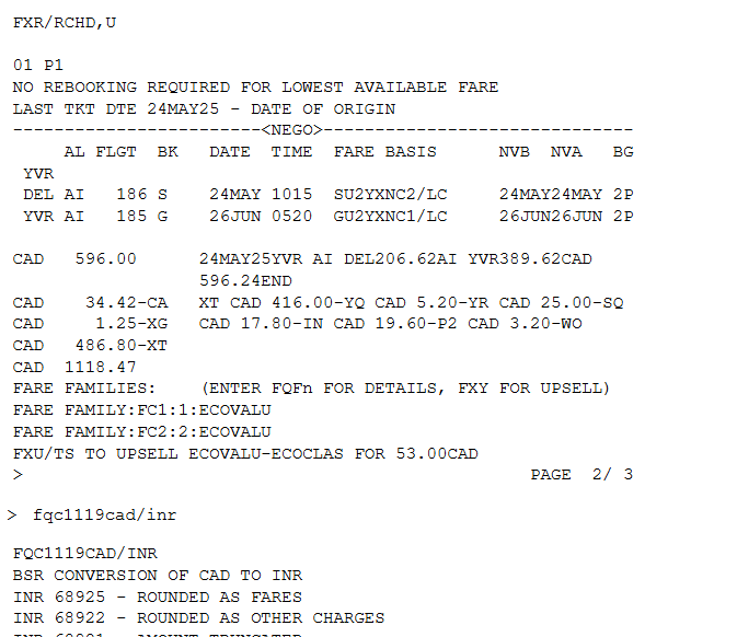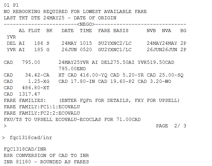 Incorrect fare fetched on YTO PCC