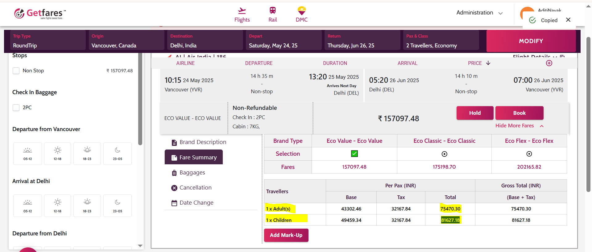 Client ID - 21413 - DREAMLAND IMMIGRATION AND IELTS CENTRE | Incorrect fare fetched on YTO PCC