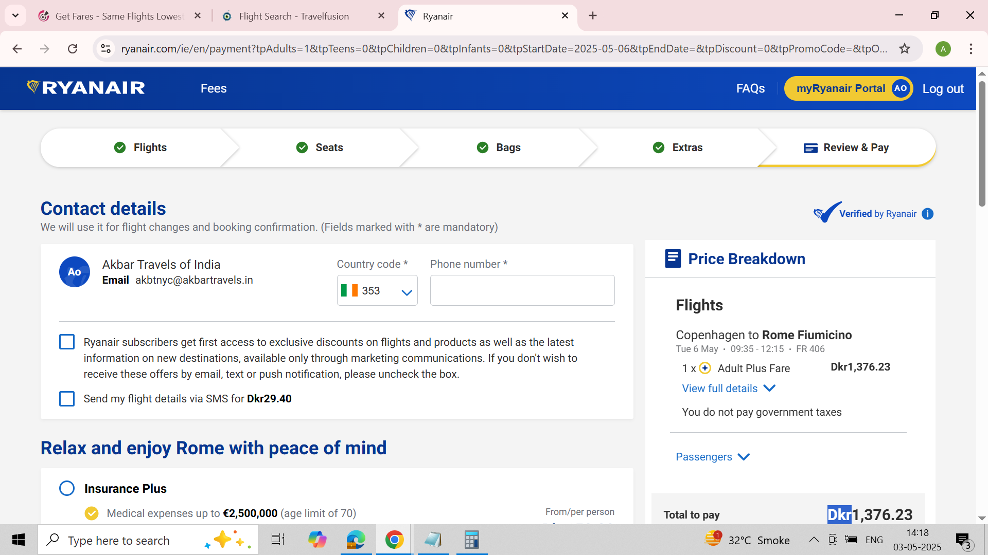 Request you to please check as Ryan Air is not reflecting on the portal.