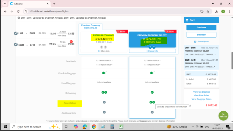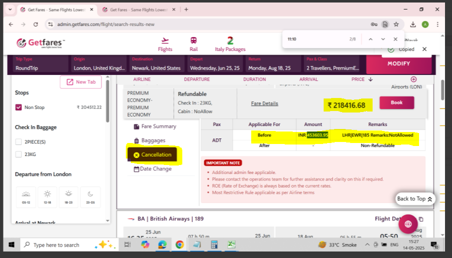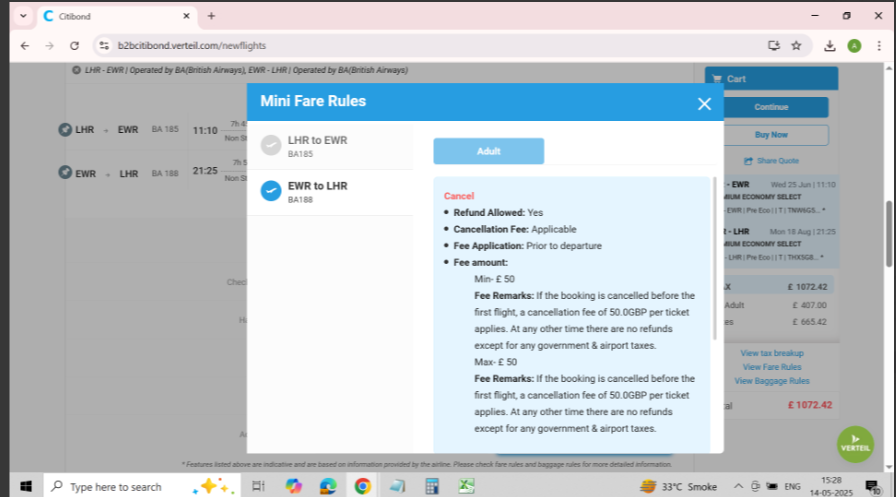 Kindly refer to the screenshots below, where the fare displayed as refundable on the portal is actually non-refundable. Additionally, the rules shown indicate a refundable fare, yet the cancellation charges are unusually high. Please look into this.