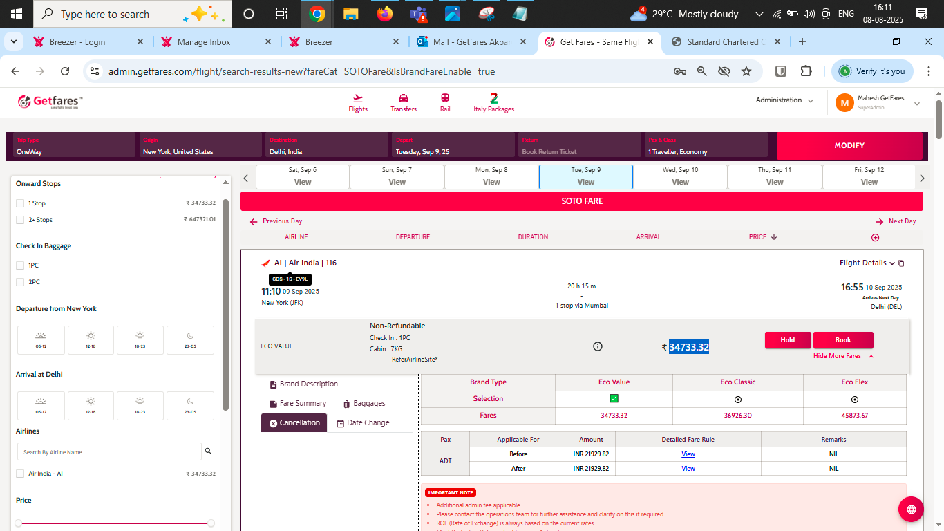 openSame fare is available in IAH but getfares fetfched fare from EV9L